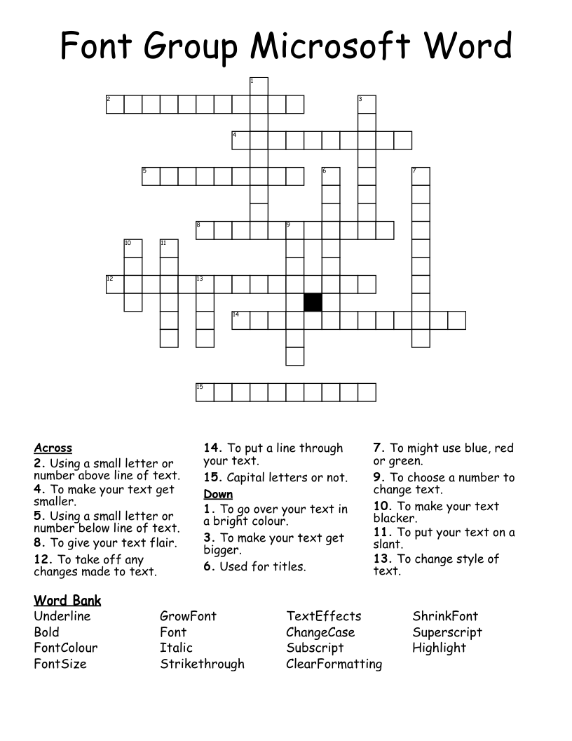Font Group Microsoft Word Crossword WordMint