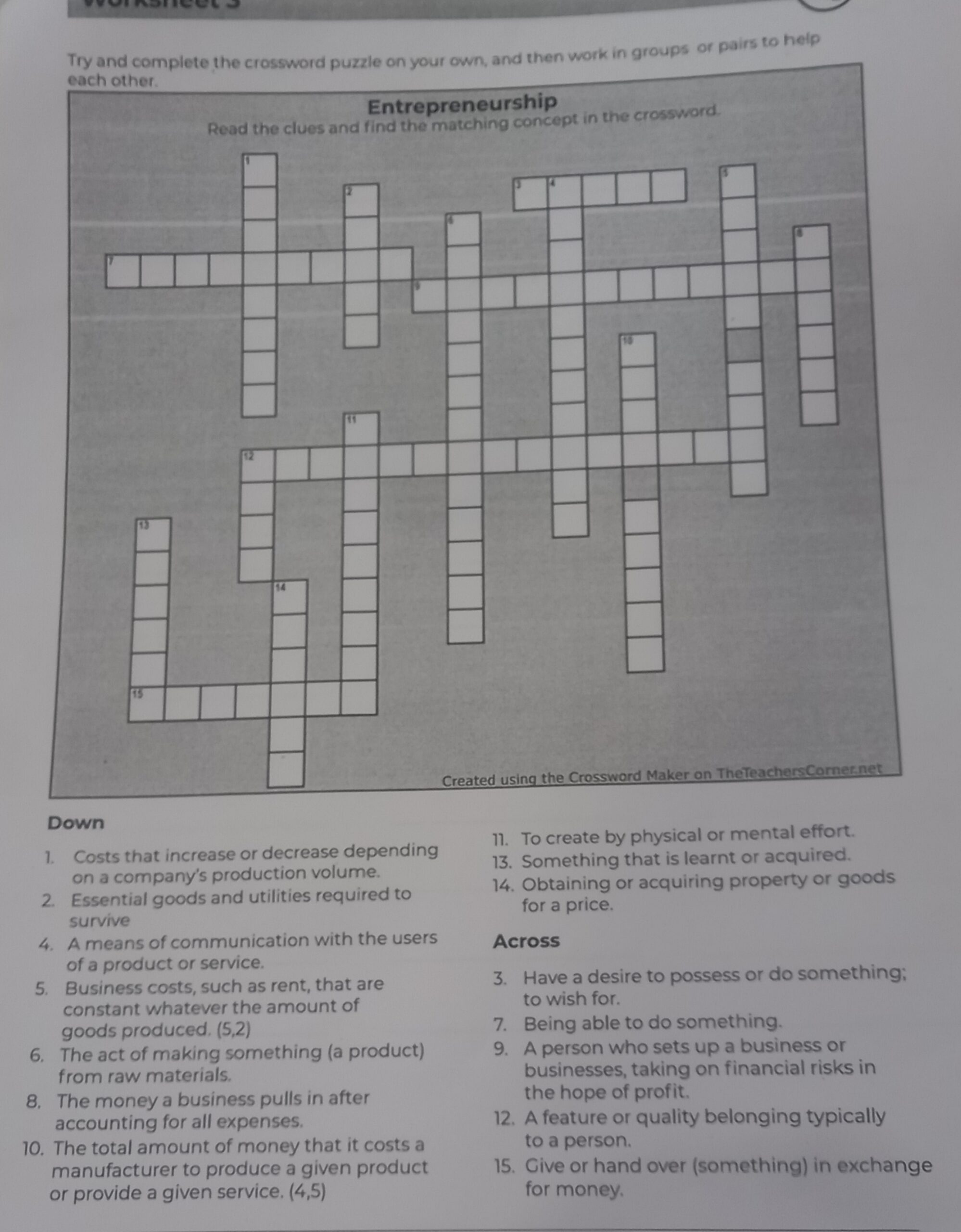Try And Complete The Crossword Puzzle On Your Own And Then Work In Group